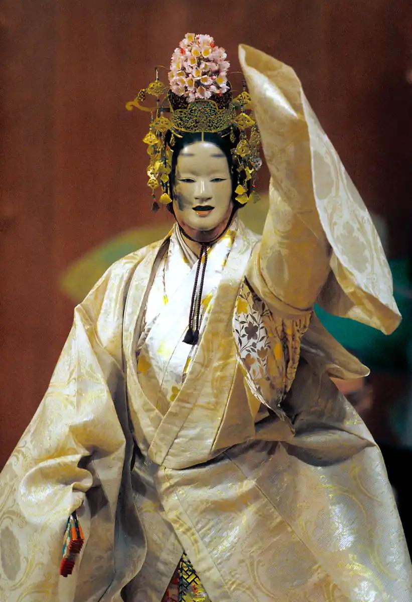 Washi paper print of professional Japanese Noh Theater photo. Mask featured: Ko-Omote. Shot in Kyoto.