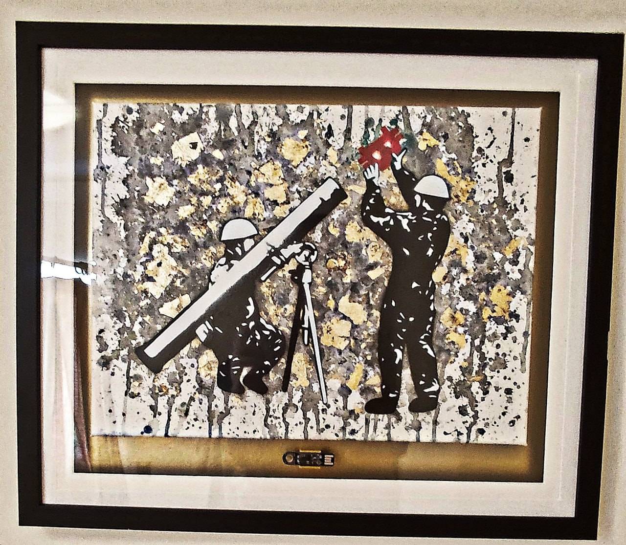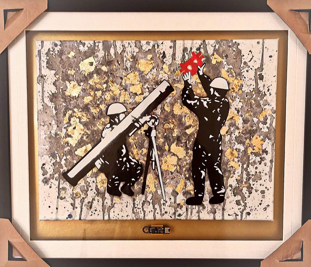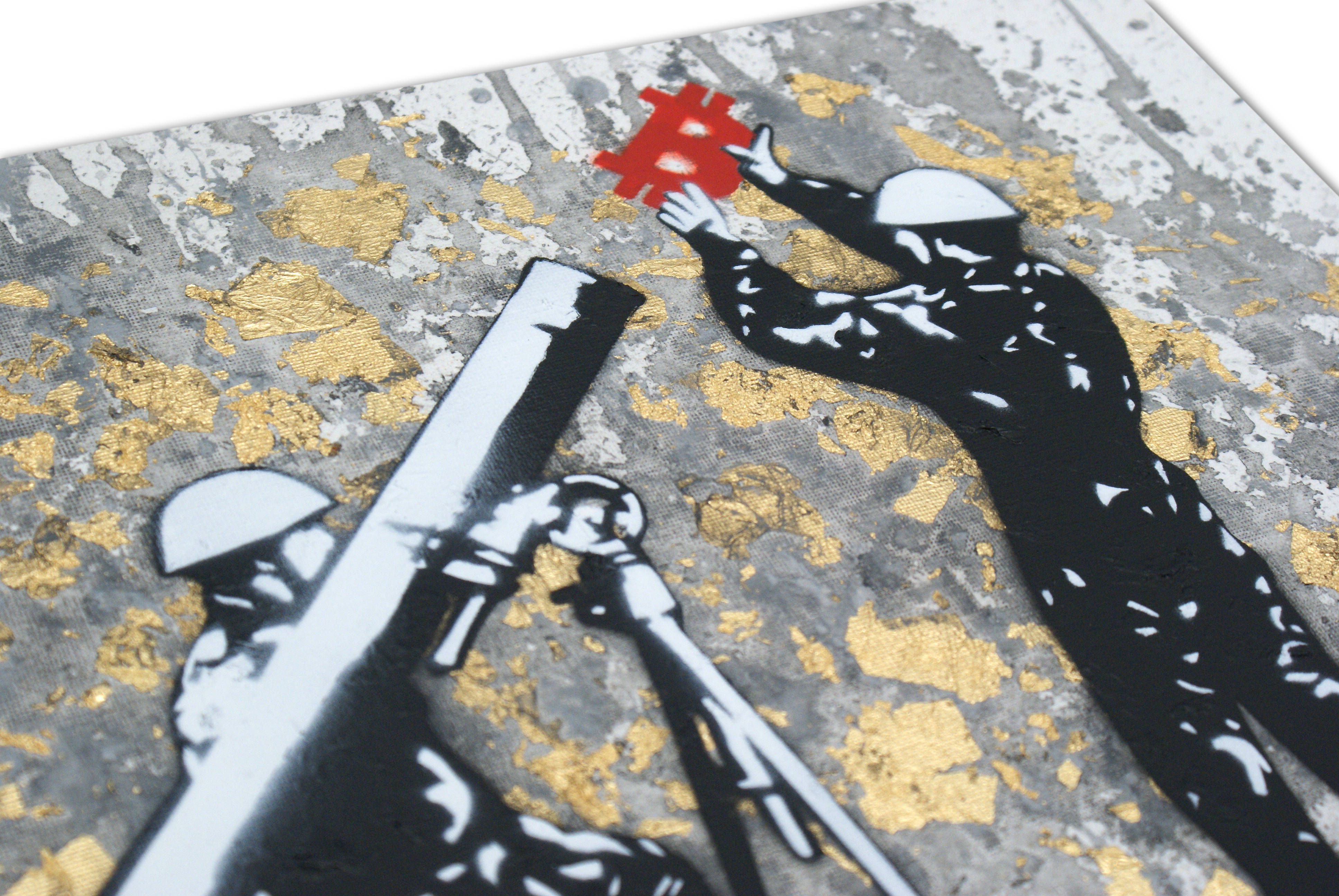 Bomb Banks Not People is an original spray painted picture on canvas by Crypsi, number 3 of a limited edition of 3 from 2024.