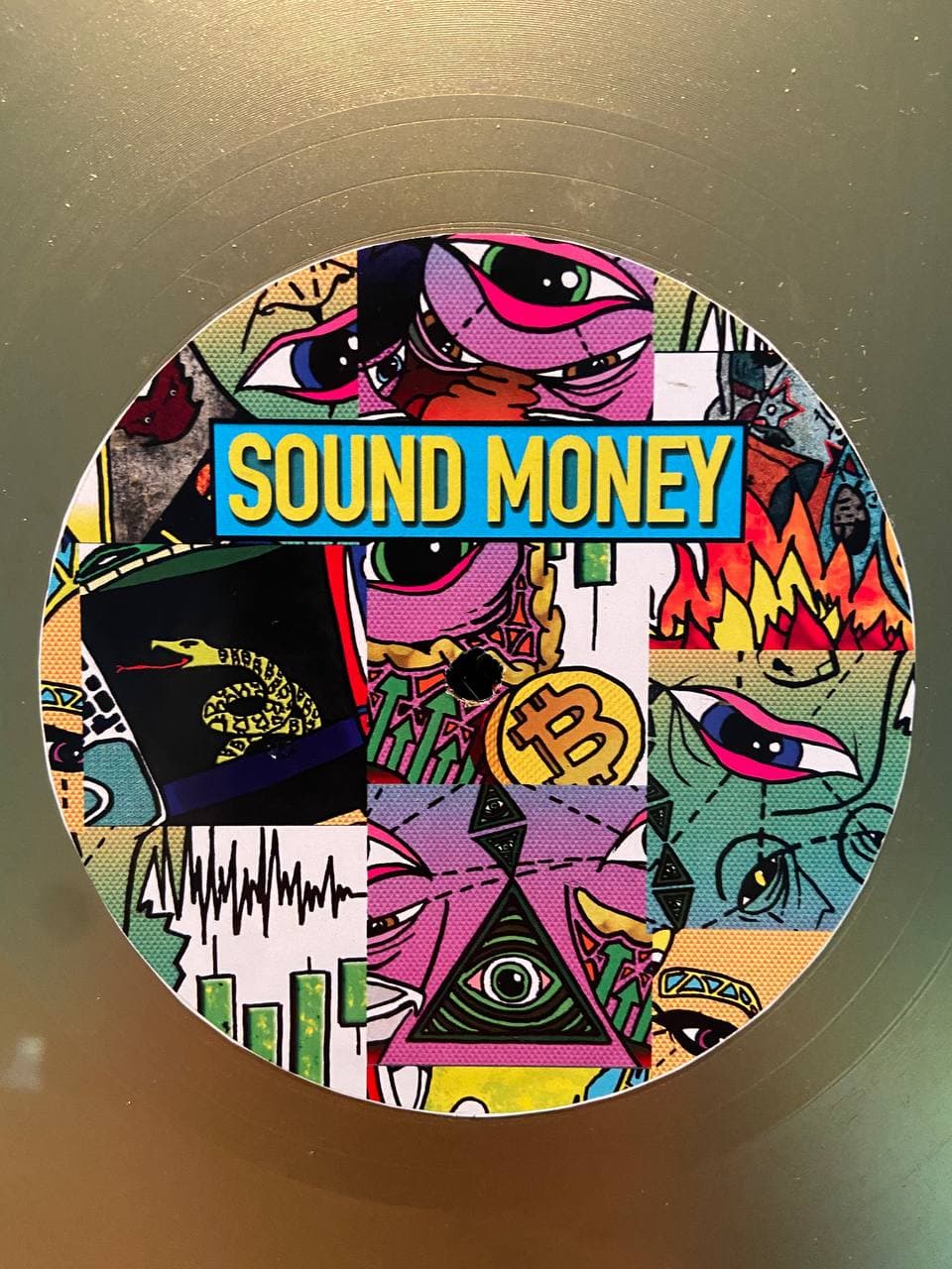 The collection includes 5 double-sided 7" vinyl record copies of each song (2 songs per record,) from the 2020 Bitcoin-centric album “Sound Money.” The clear 7” vinyl records come in hand-crafted, customized and refurbished vinyl jackets. The collection also includes a customized framed gold record that is encased in a gold frame with non-reflective acrylic glass.